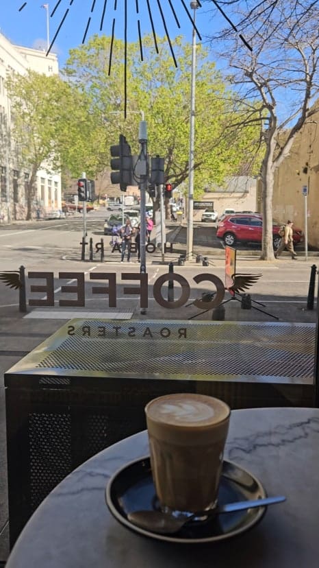 뉴욕 베이커리에서의 따뜻한 레몬그라스 티와 샌드위치