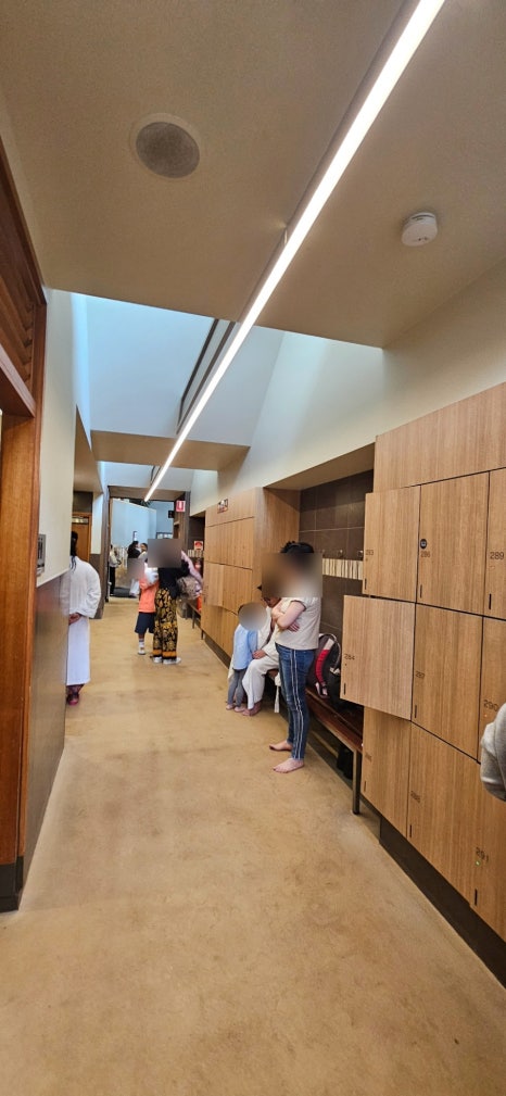 특히 어린아이와 함께 사용하는 경우 성별이 다른 탈의실이 아닌 복도에 있는 락커를 사용