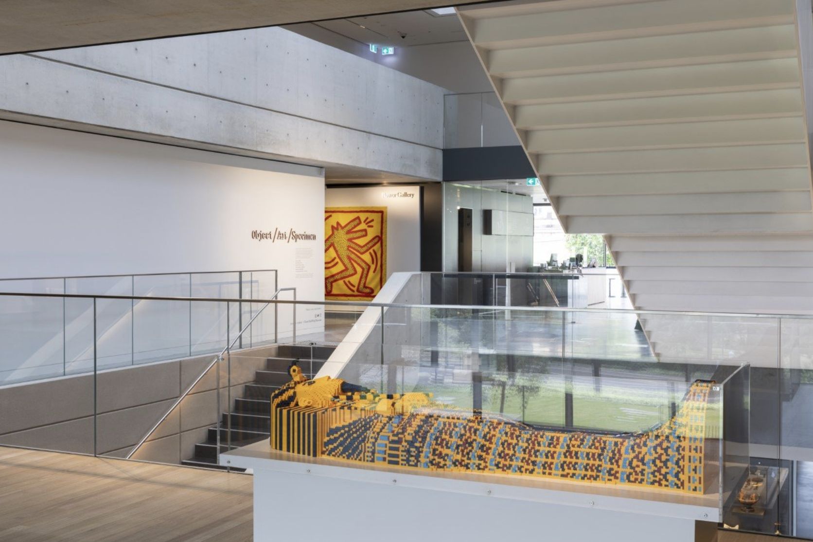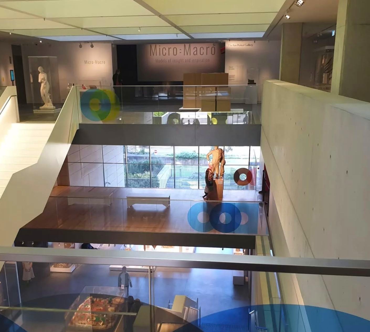 박물관의 현대적인 건축 양식은 캠퍼다운 캠퍼스의 전통적인 사암 건물과 조화를 이루며 여러 공공 층에 걸친 내부 디자인이 다르게 느껴집니다.