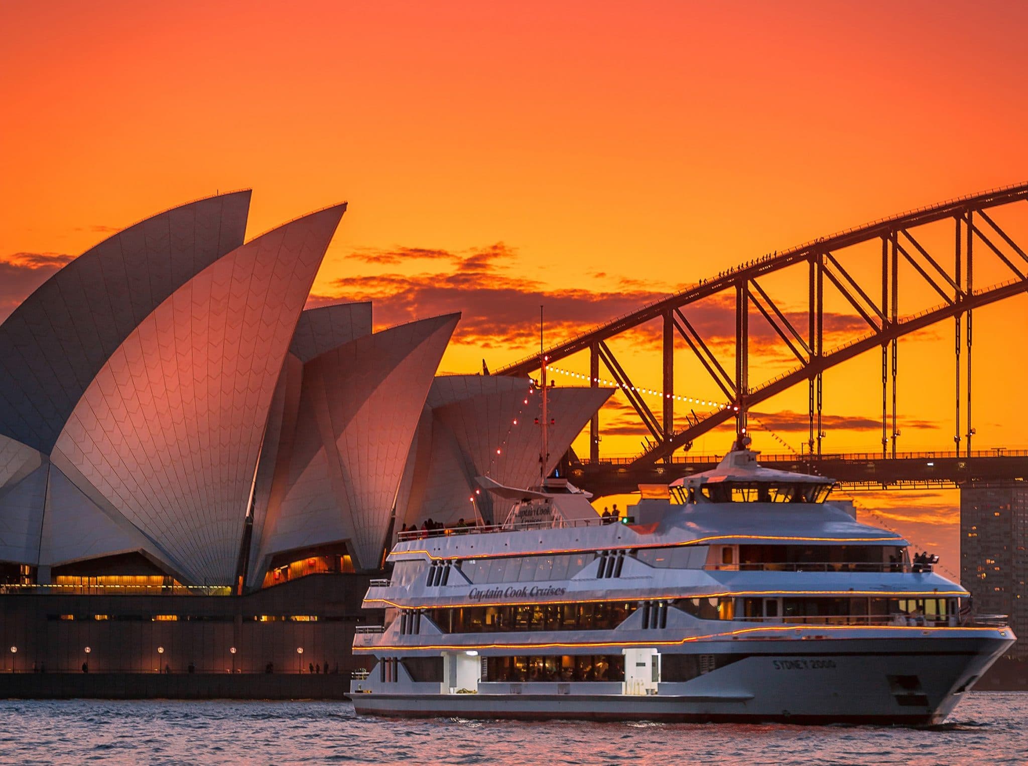 달링 하버에서 출발하는 캡틴쿡 선셋 크루즈는 시드니 로맨틱 코스의 여행필수 코스이죠,배위에서 오페라 하우스와 하버브릿지 스치켜, 일몰 지는 하늘보며 와인 한반, 로맨틱 그 자체예요, 캡틴쿡 크루즈는 65년 전통의 선박으로 시드니에선 거의 아이코닉이라고 할수 있는 크루즈인데요, 2층 야와 데트에서 바람쐬며, 사진 정멀 많이 많이 찍으세요~ 저녁 식사 옵션 선택하면 완벽한 데이트 코스가 된답니다~
