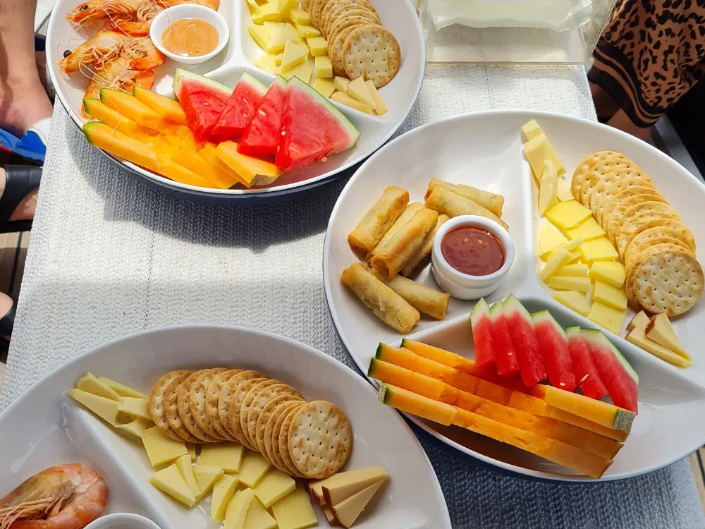 아래처럼 가벼운 핑거푸드 포함된 세일링 ONLY 와 런치 또는 디너식사 포함된 구성으로 가능합니다.