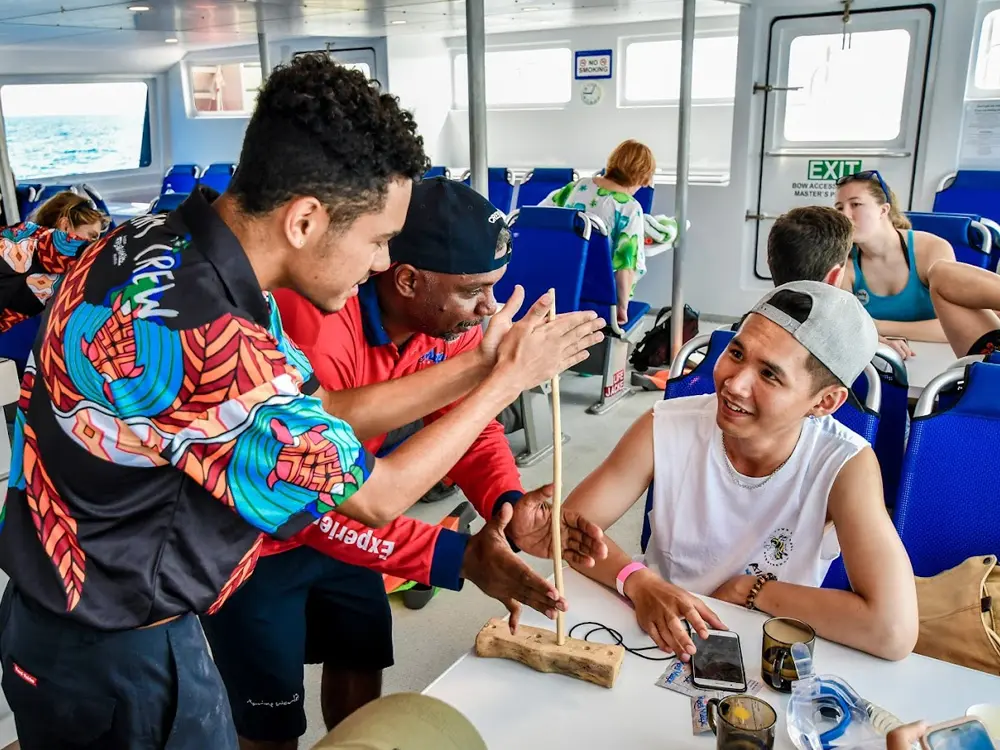 드림타임 크루즈는 원주민 문화를 체험하고 배우는 특별한 크루즈 상품입니다. 호주 원주민의 역사와 문화, 전통적인 이야기를 들을 수 있는 기회를 제공하며, 때로는 원주민 가이드가 동행하여 그들의 전통적인 산호초와 해양 지식을 쉐어하며 특별한 즐거움을 더 만들어 드립니다.