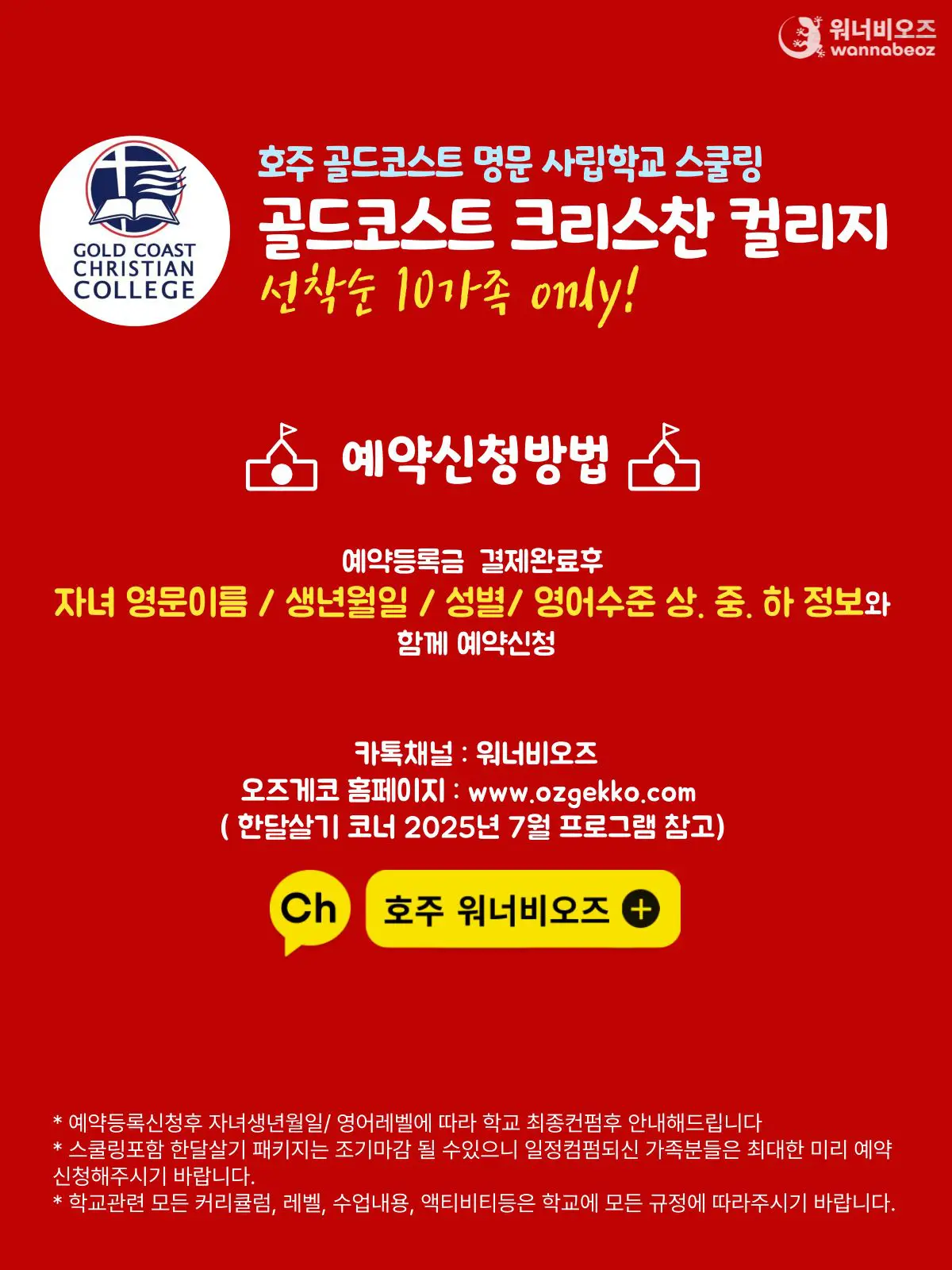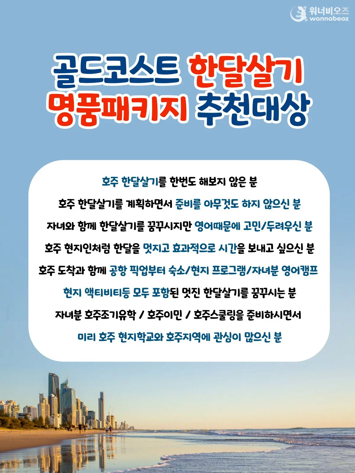 [마감] [2025년 1월] 명품 호주 한달살기 골드코스트 영어캠프 패키지 선착순 모집 !!