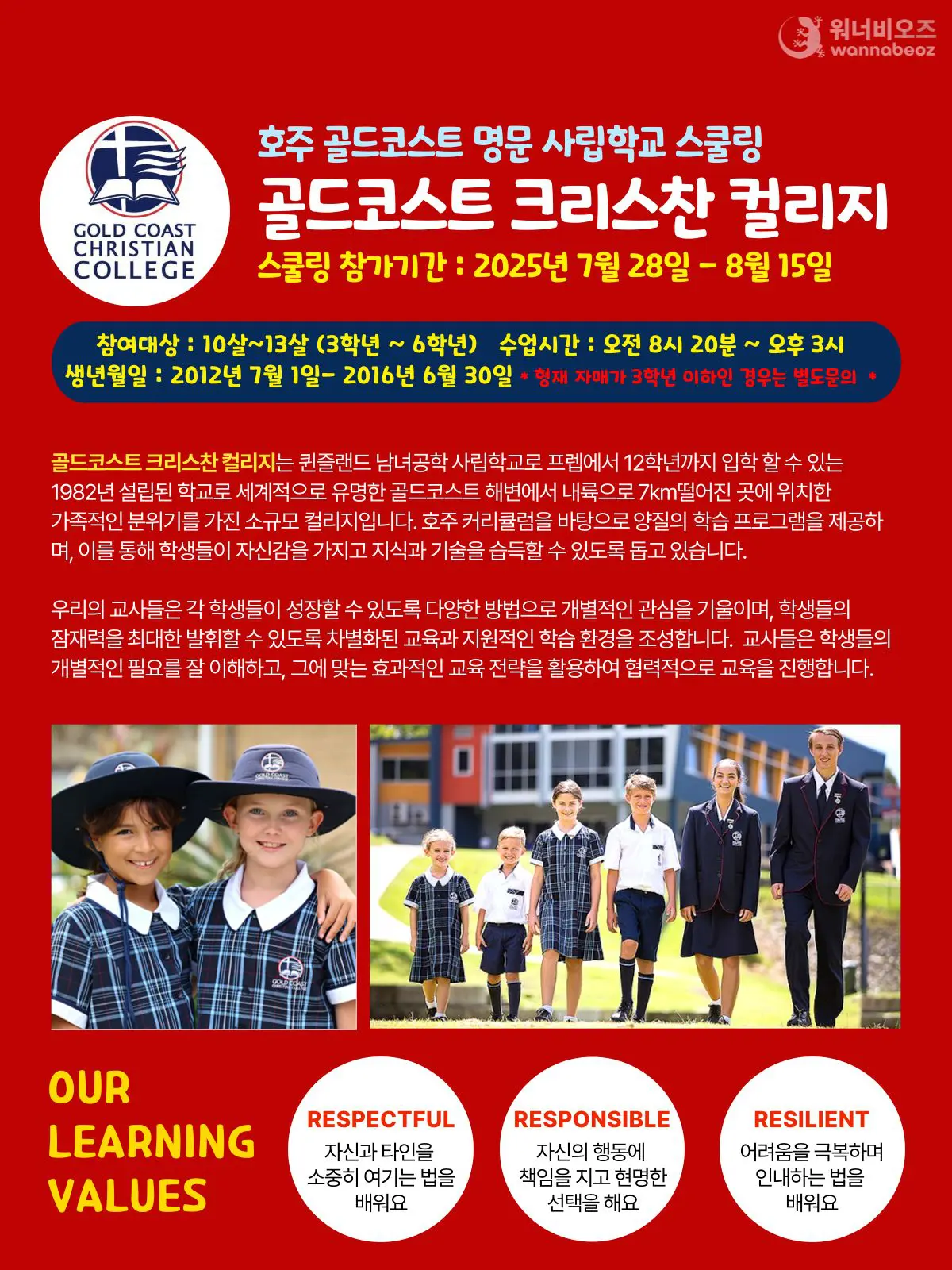 [2025년 7월] 호주 골드코스트 단기 사립학교 스쿨링 명품 호주 한달살기 패키지