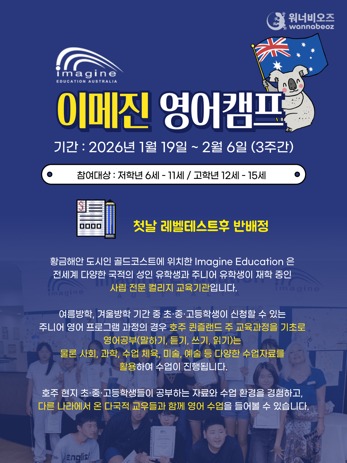 [마감] [2026년 1월] 명품 호주 한달살기 골드코스트 영어캠프 패키지 선착순 모집 !!