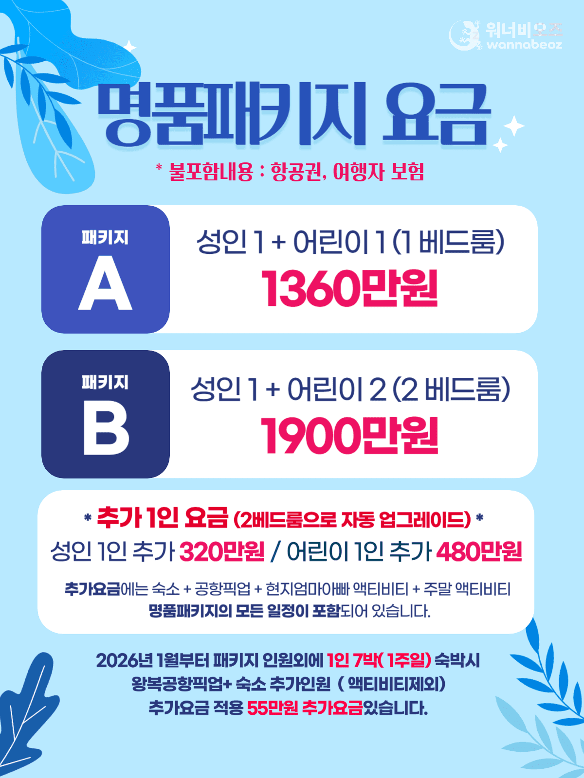 • 2025년 9월30일 이후 예약시엔 전체 패키지 요금 결제 해주셔야 하며 환불 되지 않습니다.