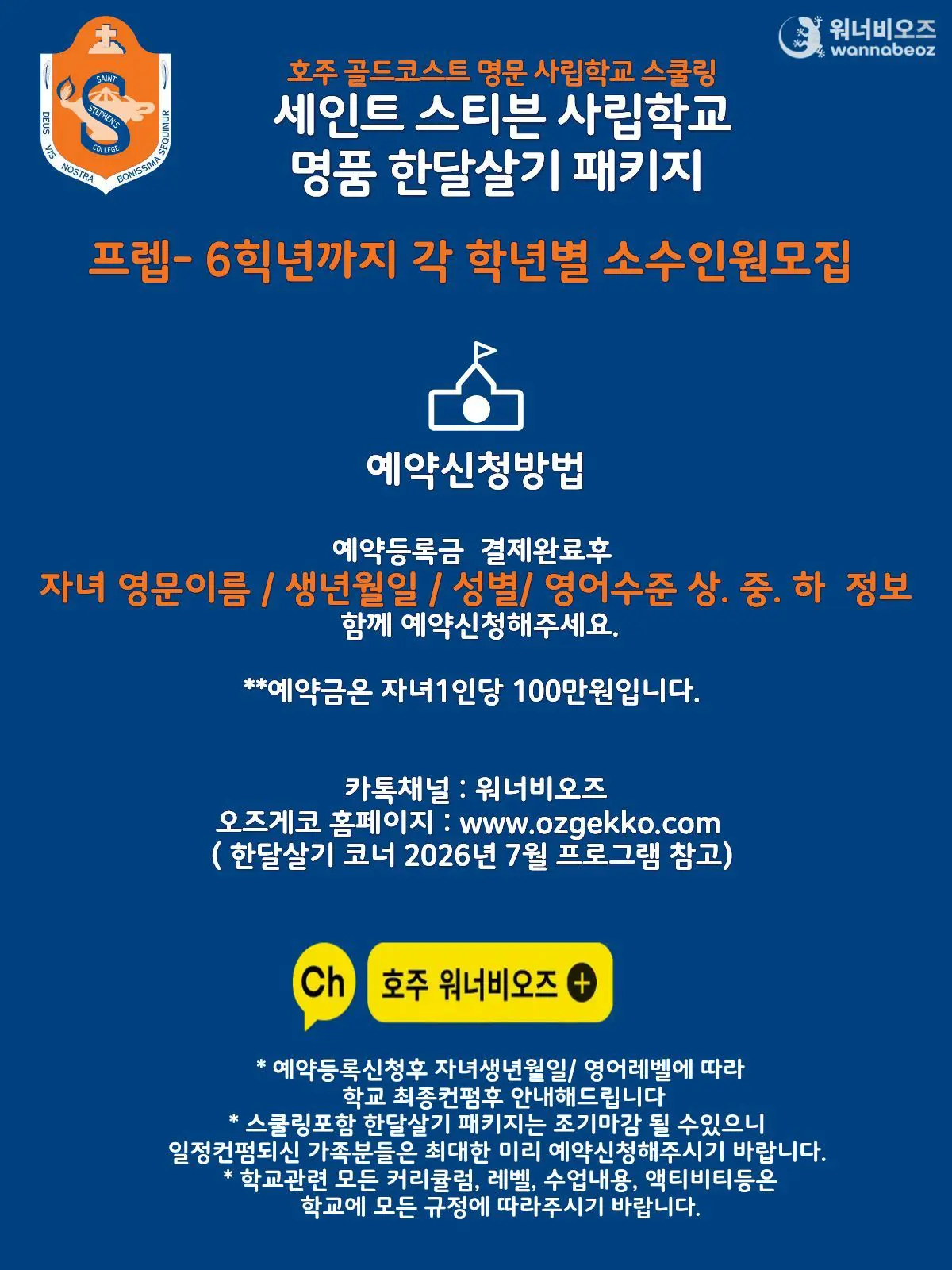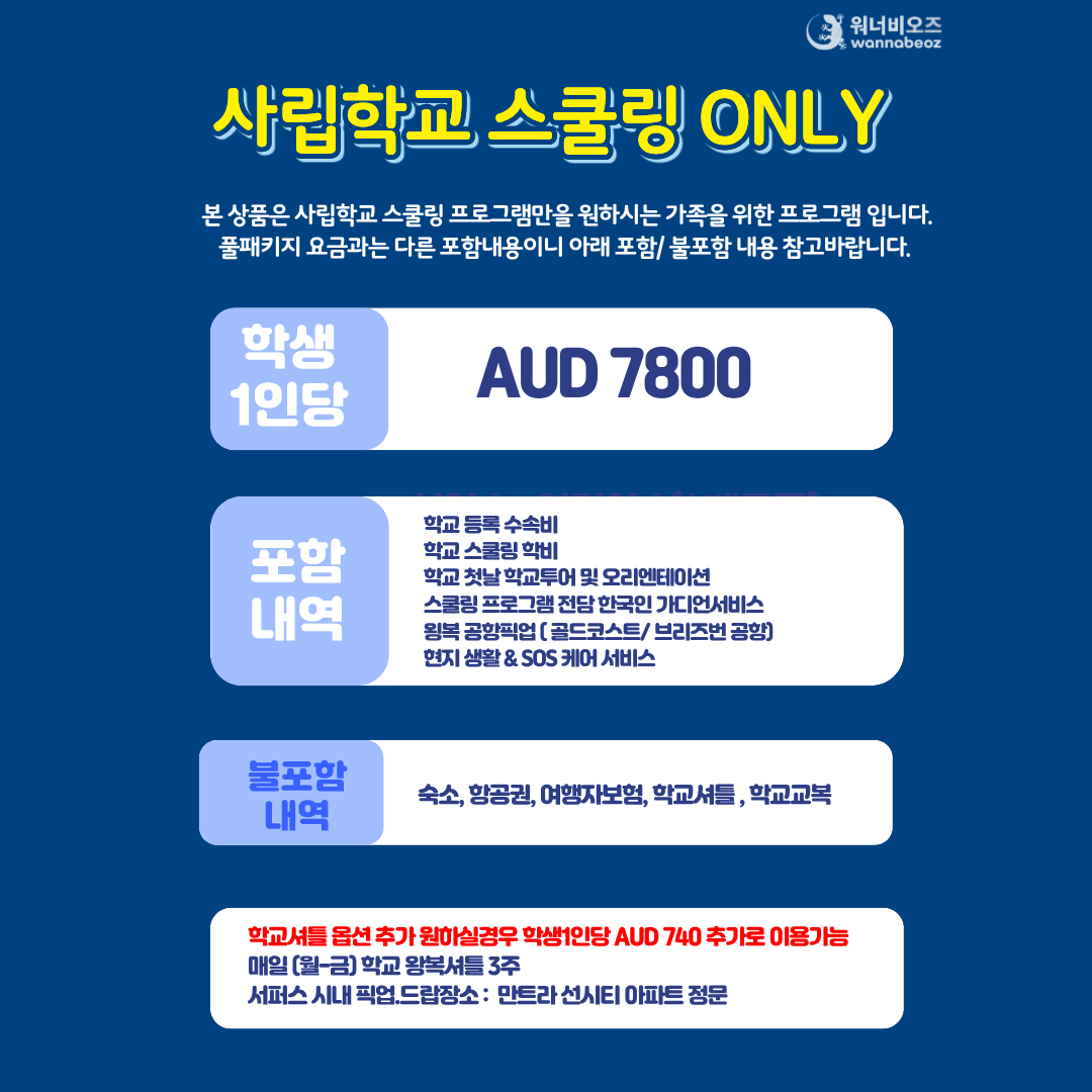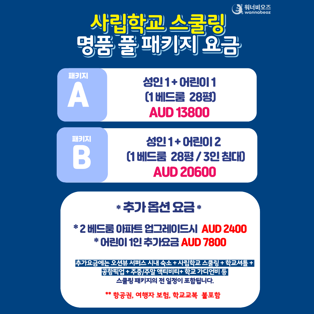 - 예약금은 학생1인당 호주달러 AU$1000 입니다.